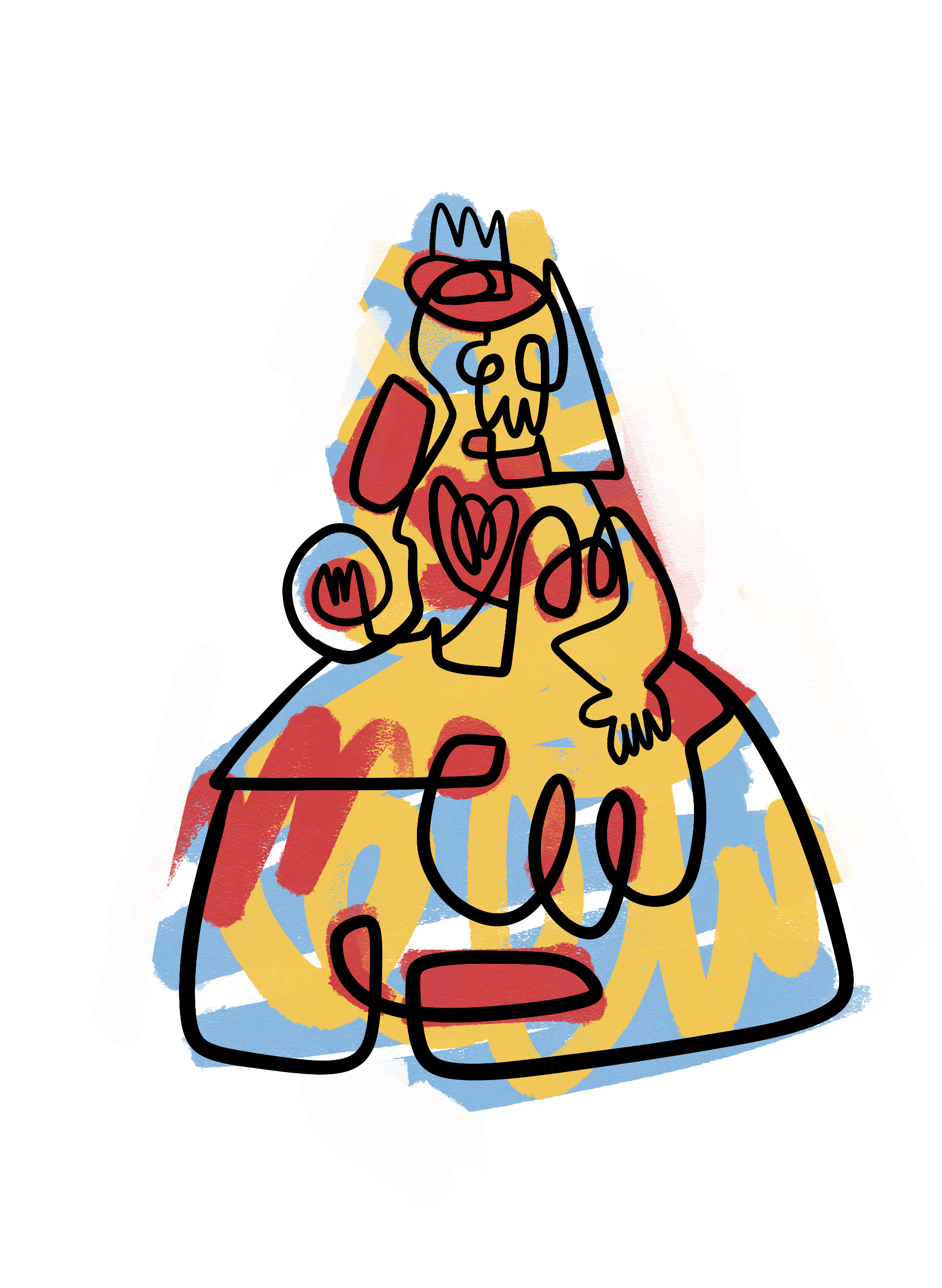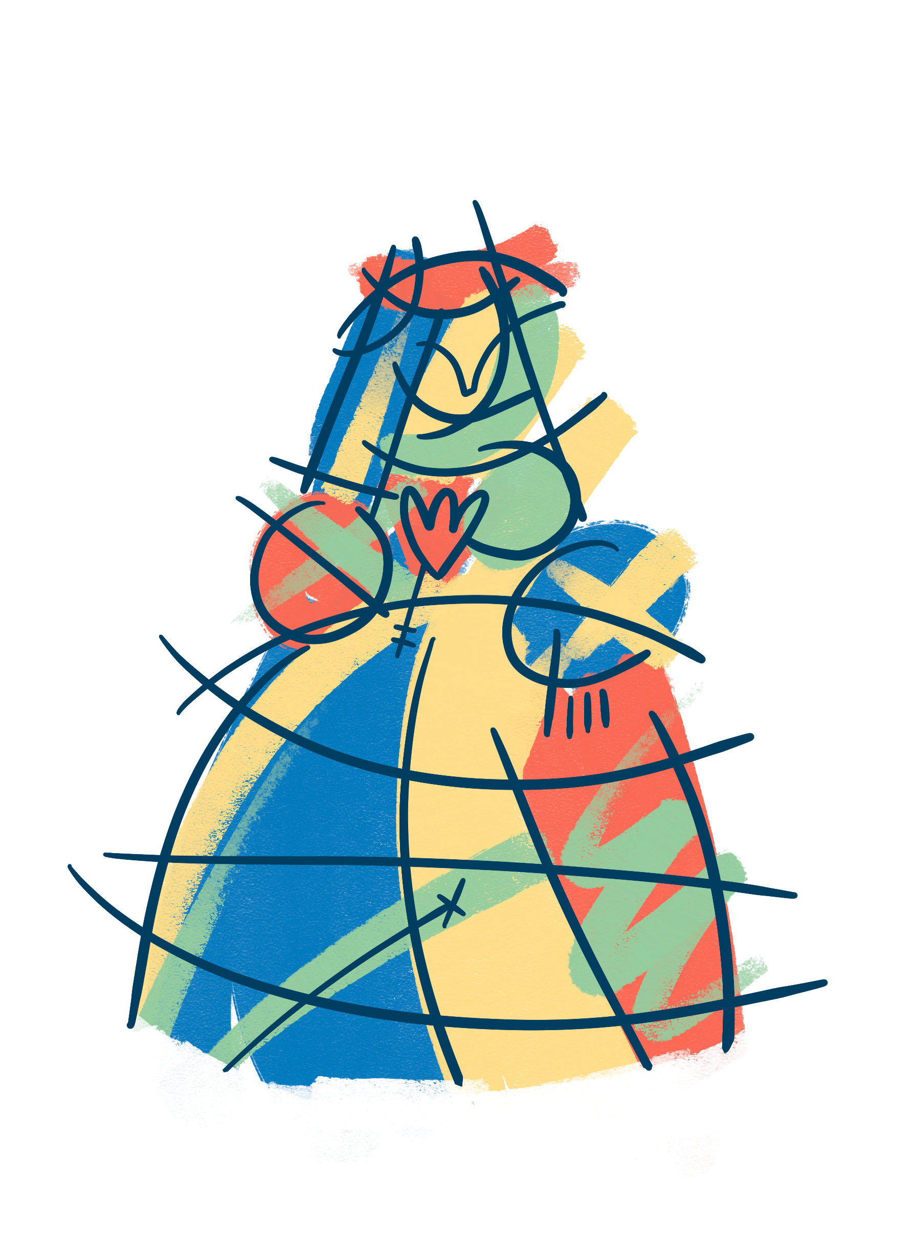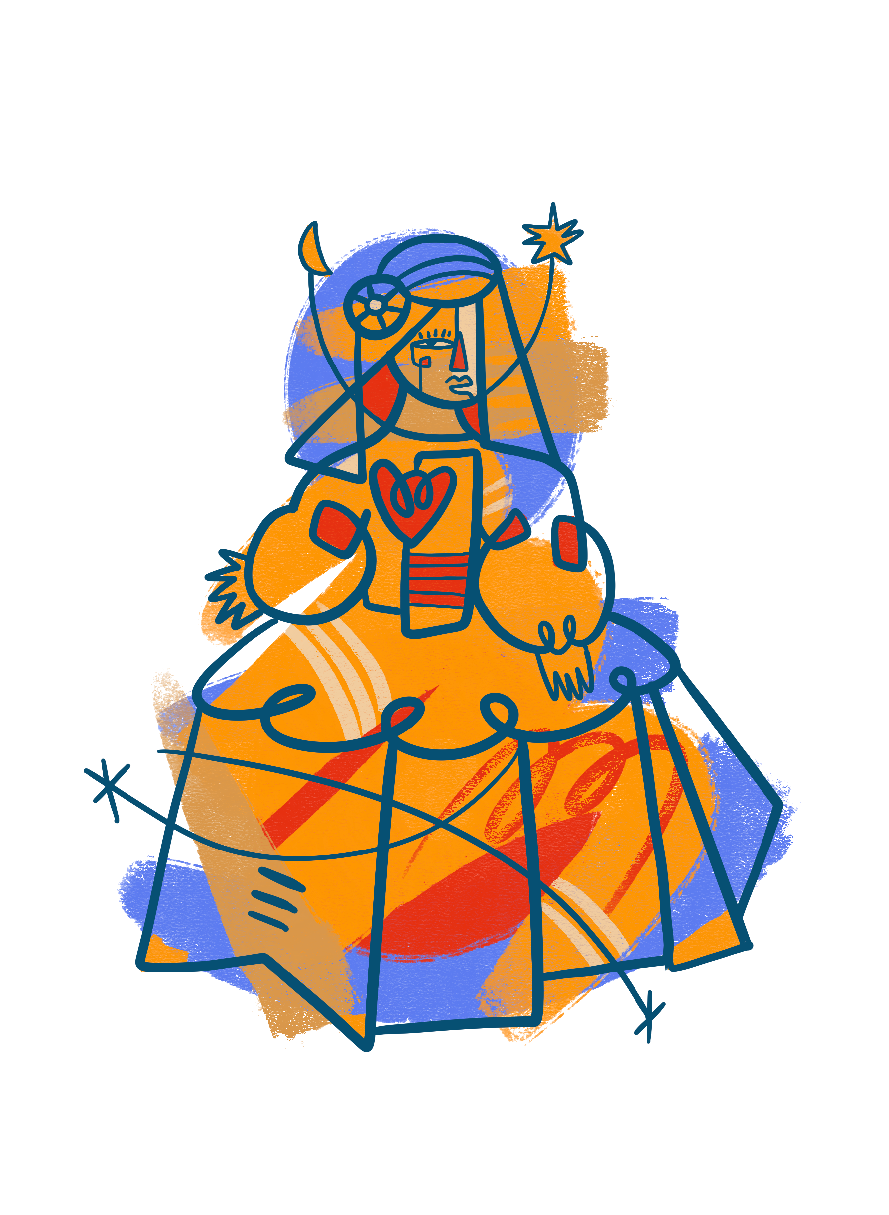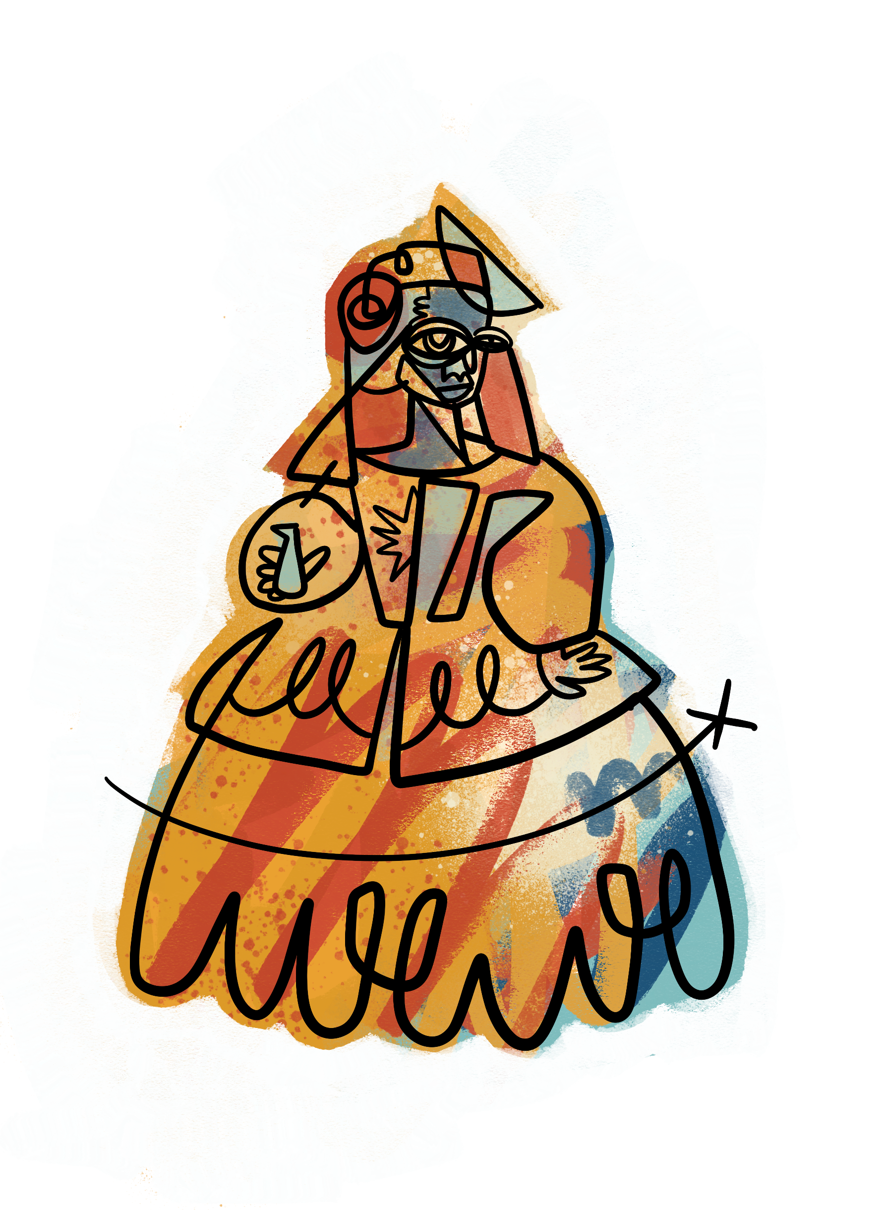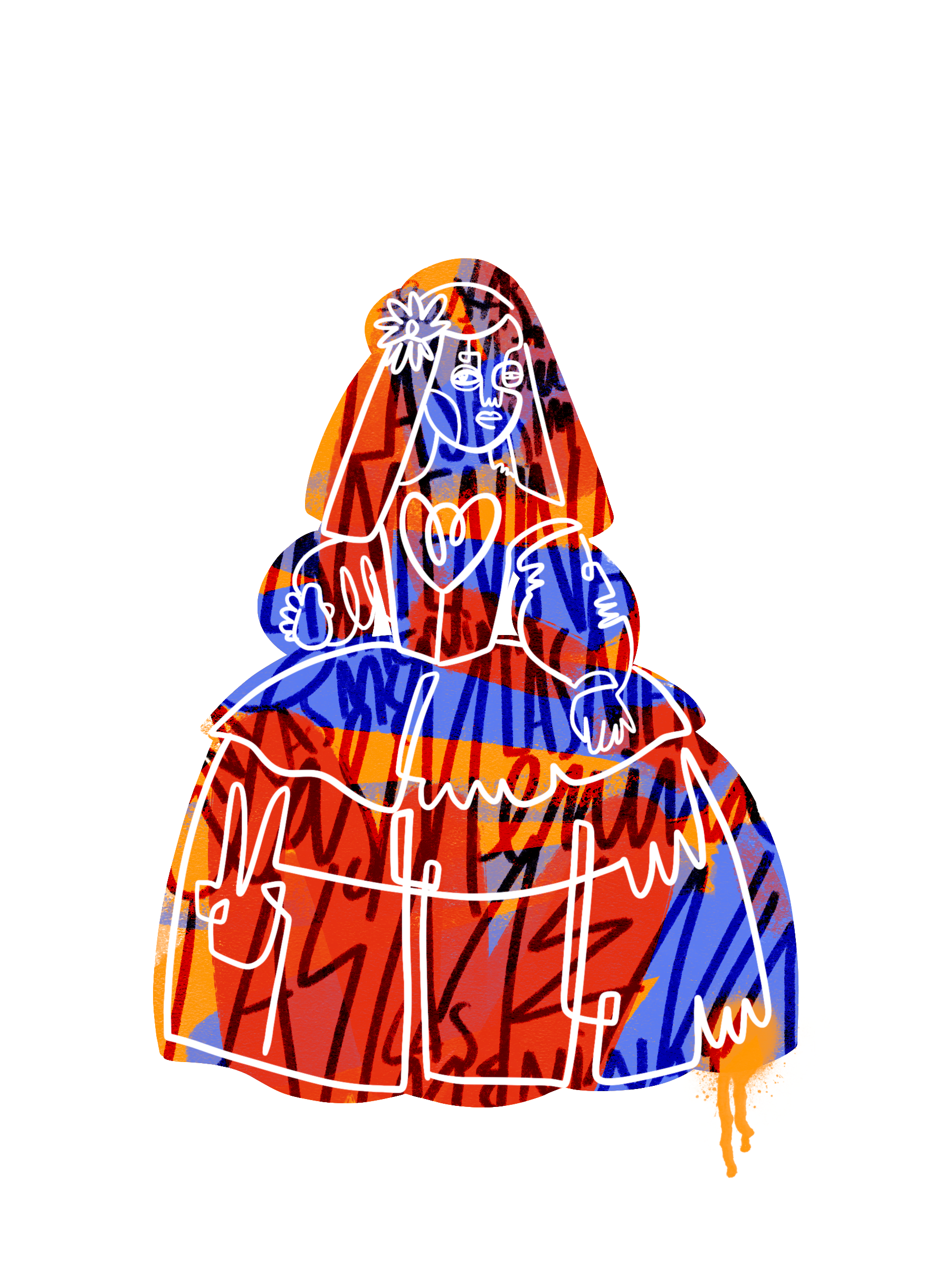 The vibrant colours and energy of the painting capture attention from a distance, while as you get closer, the textures and symbols reveal narratives within narratives, weaving a complex and multiple story that invites you to explore every corner. The lines and signs, characteristic of Gudiño's style, build a universe that fuses the baroque with a modern and pop touch.